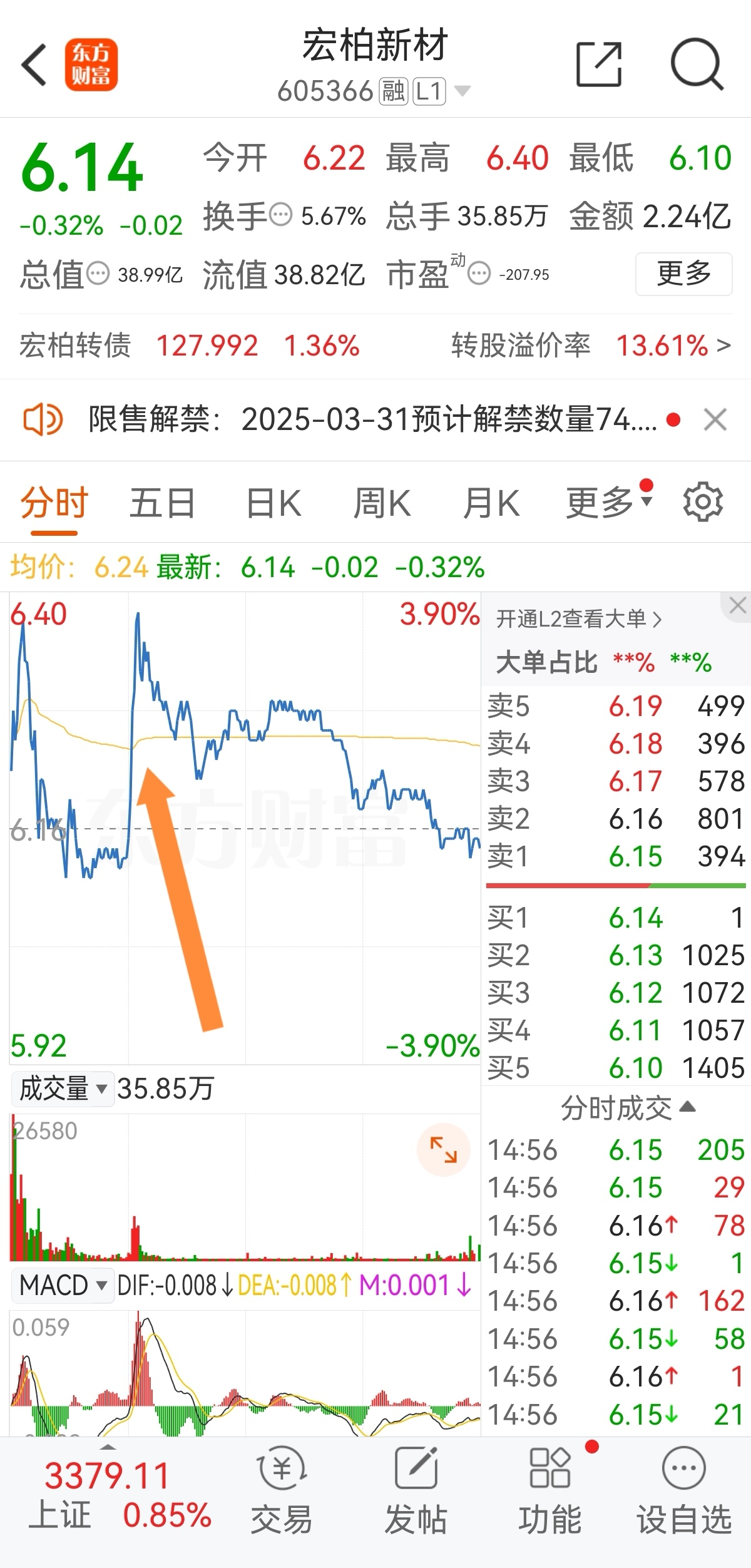 个人观点:股价昨日启动,慎防主力盘中诱多动作(如图标)/一波急拉后缓慢下落,散户投资者做到股价不跌就不买不加仓,股价飙升就一动不动稳稳坐轿;加仓的条件,以昨日收盘价6.16元计,每下跌3~5个点理性加仓,反弹2.5个点即挂单卖出,原底仓则不动。