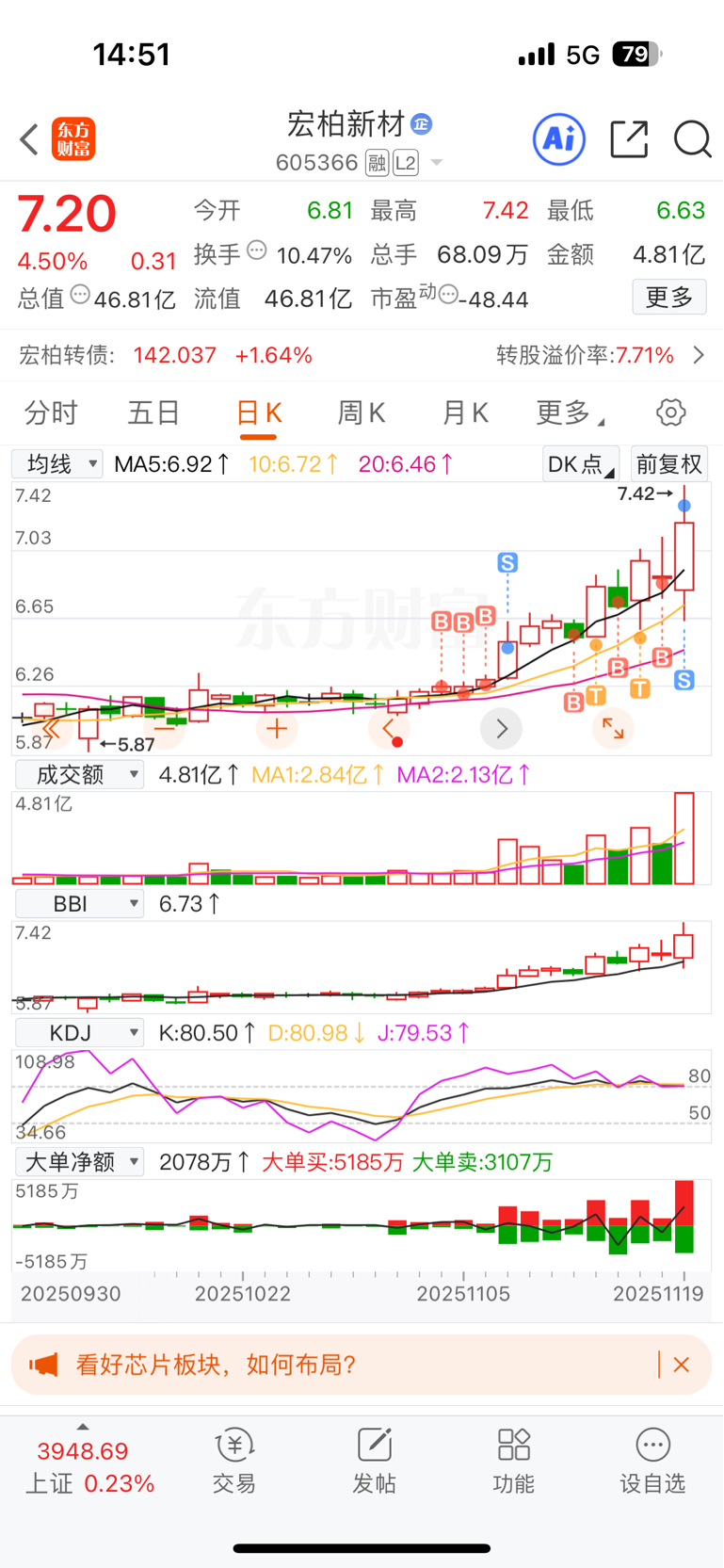 $宏柏新材(SH605366)$ 这一波有机硅上涨你一个板都没有。你没有蛋蛋