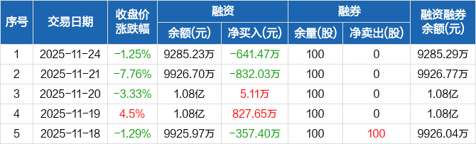 宏柏新材:融资净偿还641.47万元,融资余额9285.23万元(11-24)