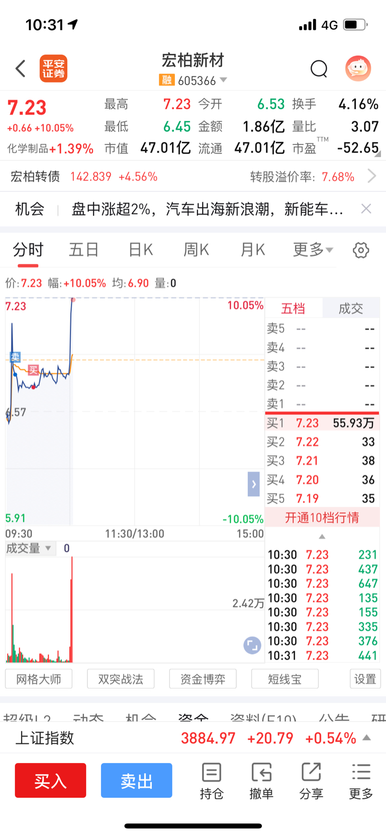 $宏柏新材(SH605366)$ 只能说运气好 差点卖飞了