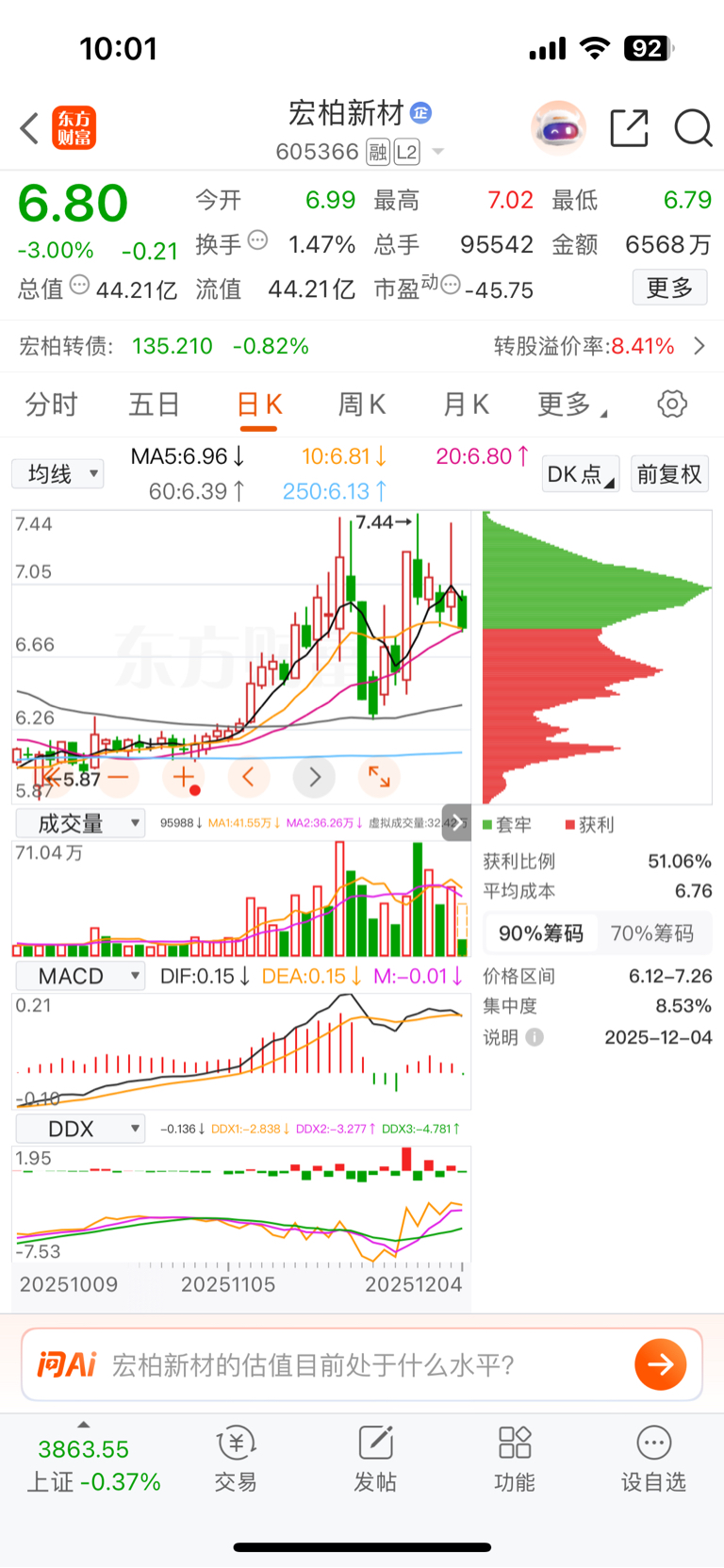 $宏柏新材(SH605366)$ 筹码成功搬上去,代表出货完成