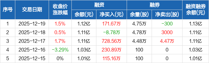 宏柏新材:融资净买入171.67万元,融资余额1.12亿元(12-19)