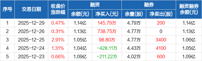 宏柏新材:连续3日融资净买入累计983.35万元(12-29)