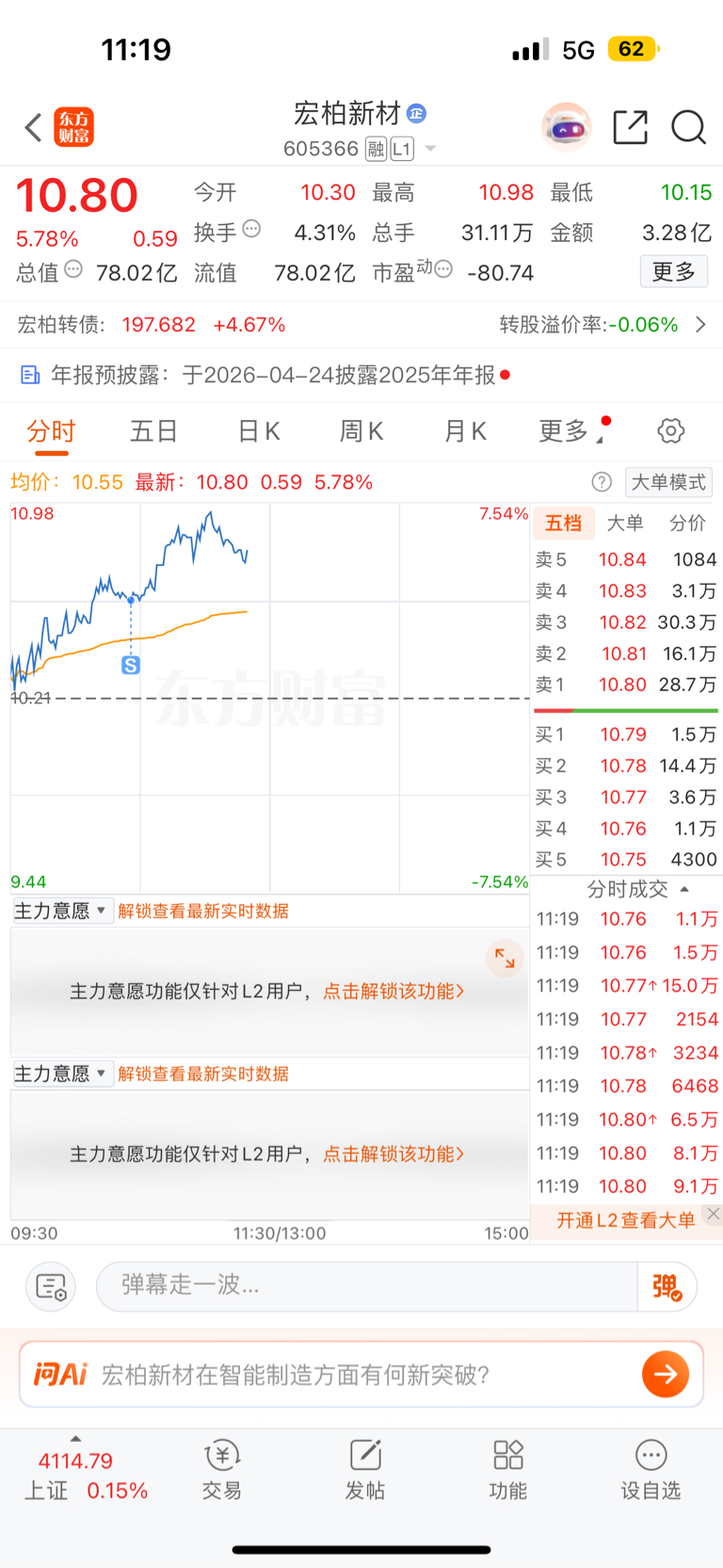$宏柏新材(SH605366)$ 有跟我一样卖飞的吗
