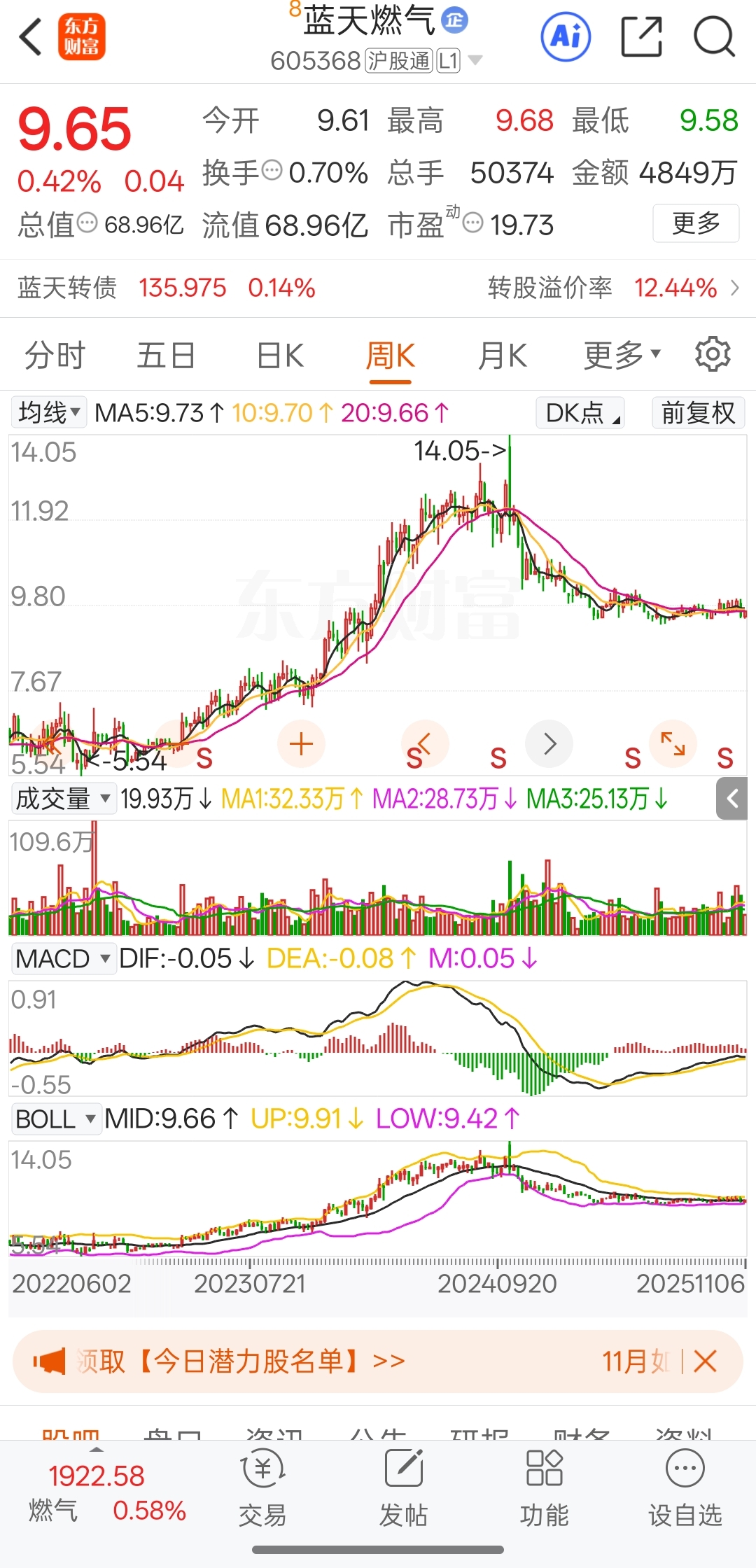 $蓝天燃气(SH605368)$ 既然质押股票,说明这个主力认为这个价钱质押出去很值,划算,看看大结构,要不是930早回调了,现在930行情托着他一直出货,也不允许砸到4块的底部,否则违反天道,会被追责,只能横在这,没货就维持股价,有货正好借行情出干净