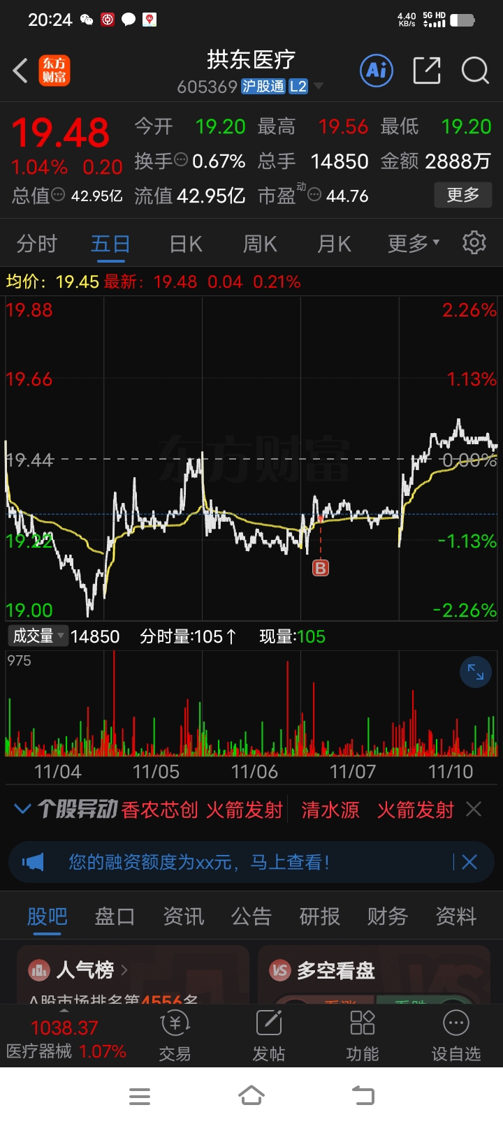 $拱东医疗(SH605369)$ 我昨天进来了,可以慢慢爬坡了……