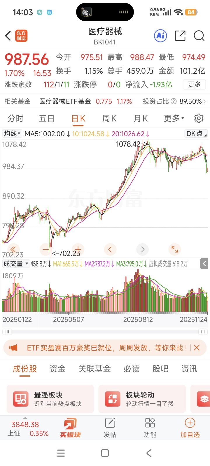 $拱东医疗(SH605369)$ 这货也没有雷,为什么跑输大盘这么多
