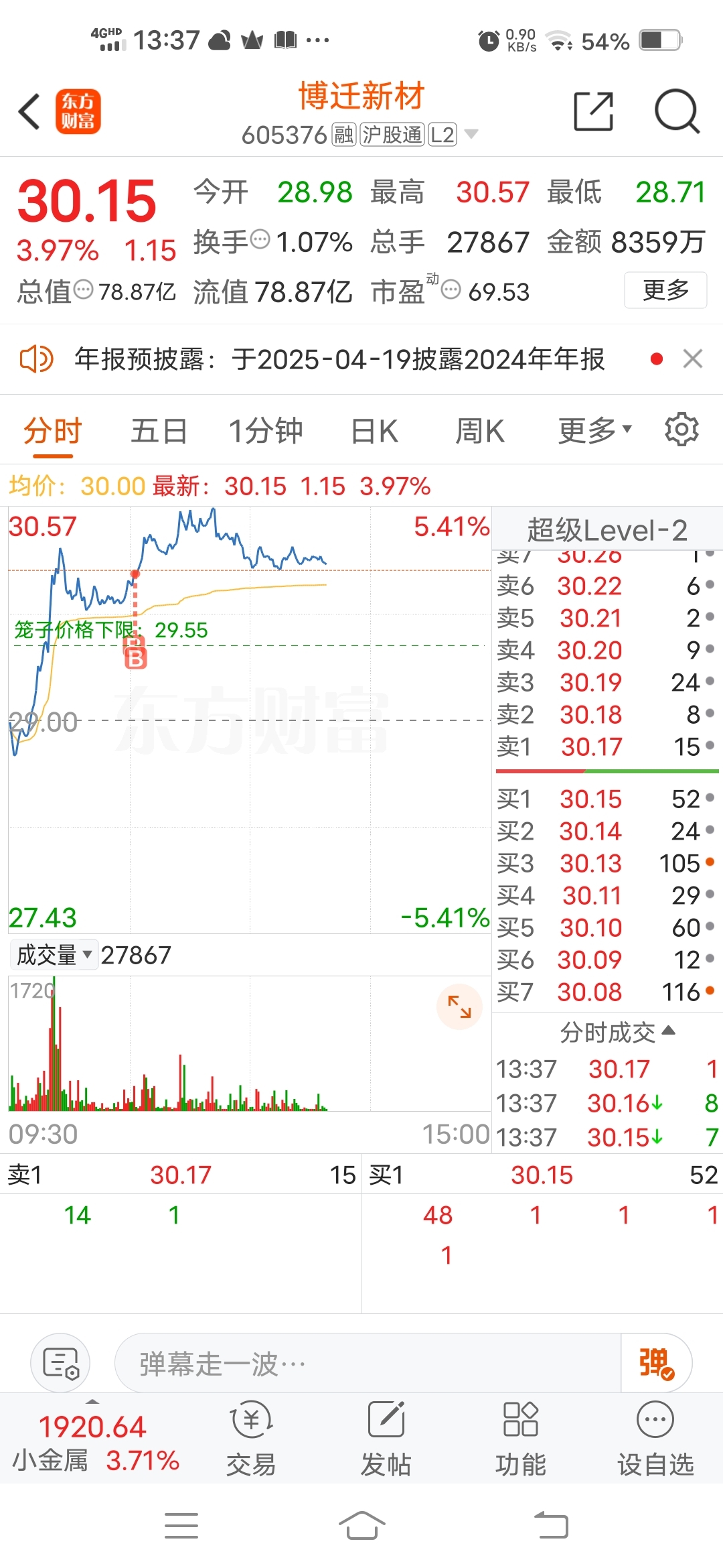 $博迁新材(SH605376)$ 该发力了,老表#炒股日记#