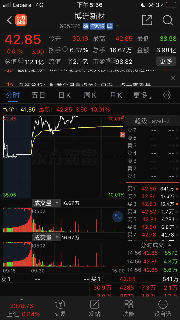 $博迁新材(SH605376)$ 下周吃肉