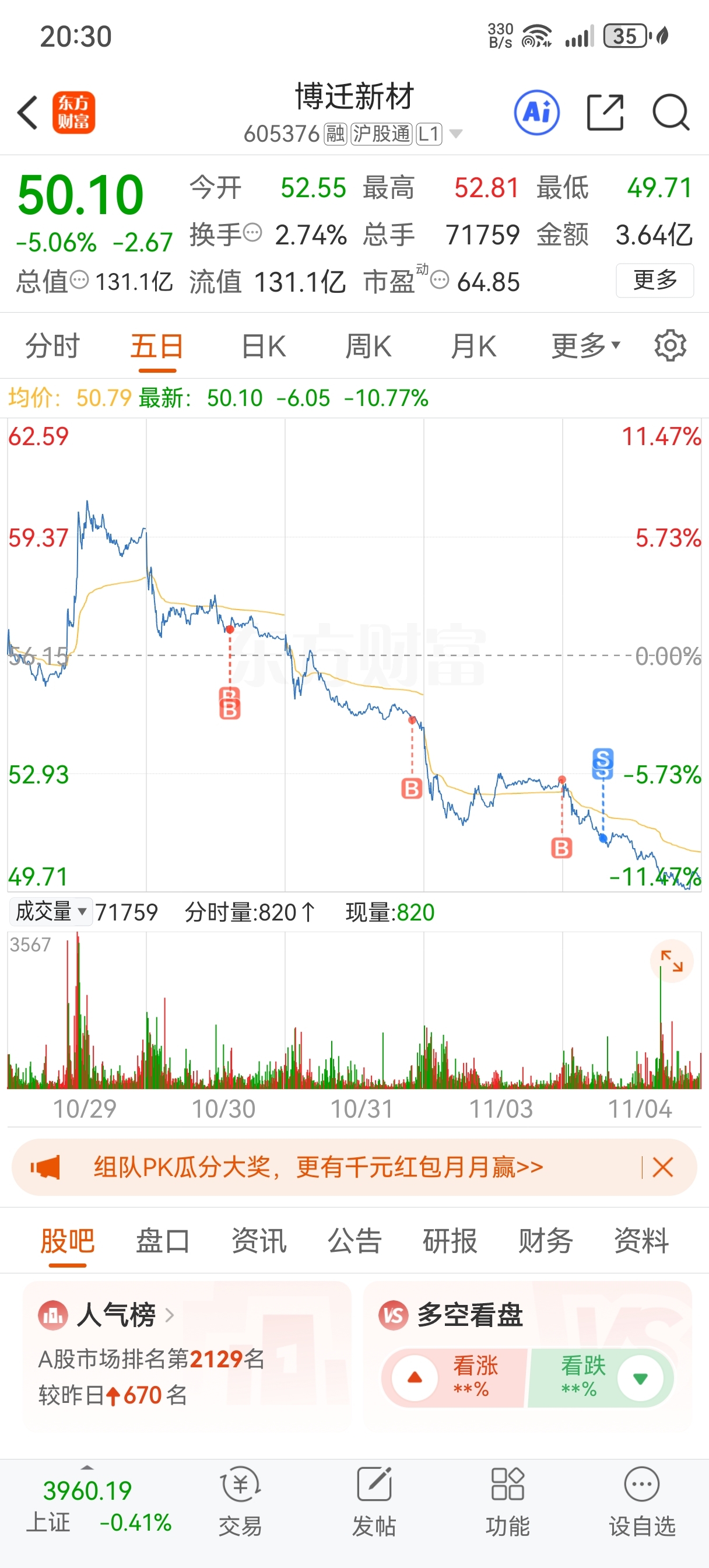 $博迁新材(SH605376)$ 想抄底朋友终极警告