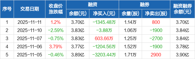 博迁新材:融资净偿还1345.48万元,融资余额3.7亿元(11-11)