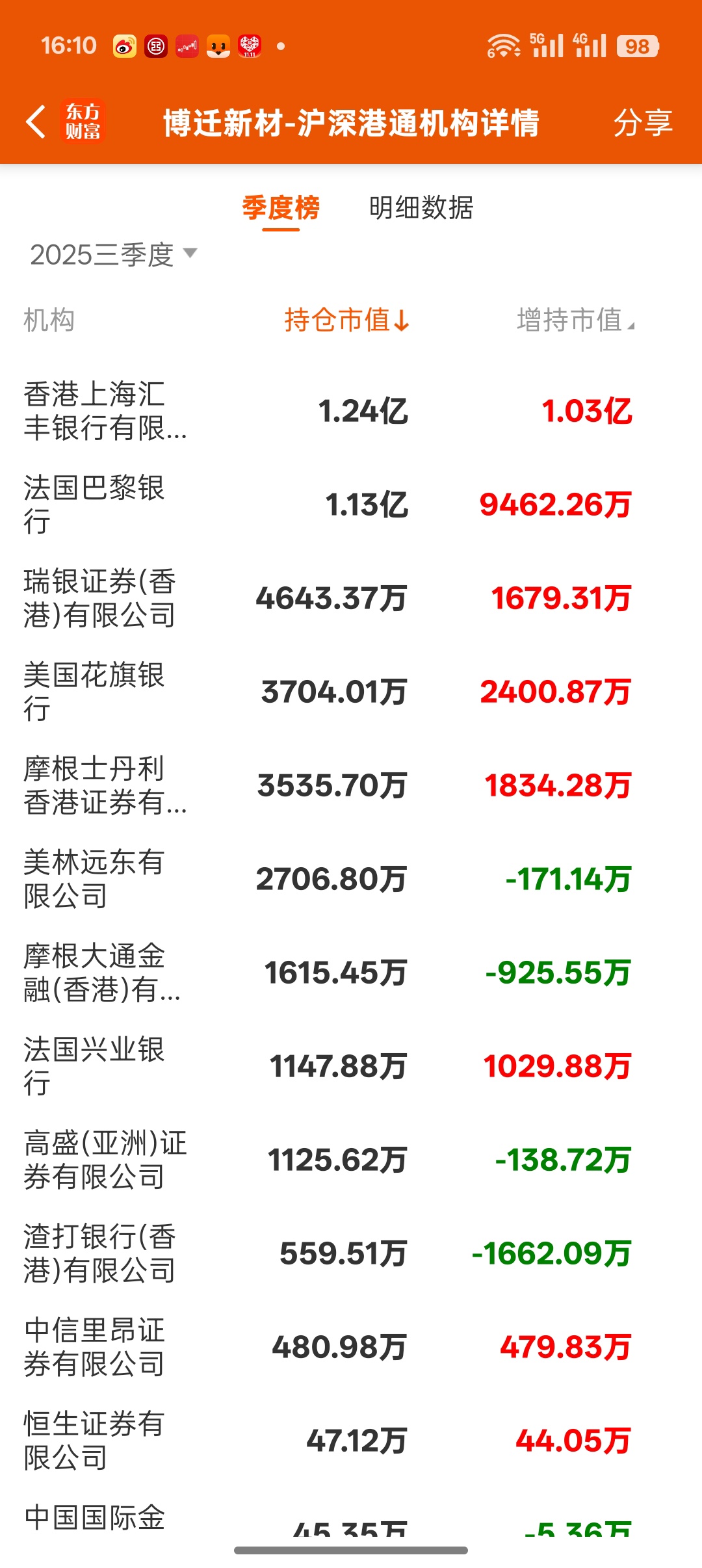 $博迁新材(SH605376)$ 外资三巨头三季度加仓中国资产