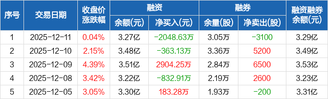 博迁新材:融资净偿还2048.63万元,融资余额3.27亿元(12-11)