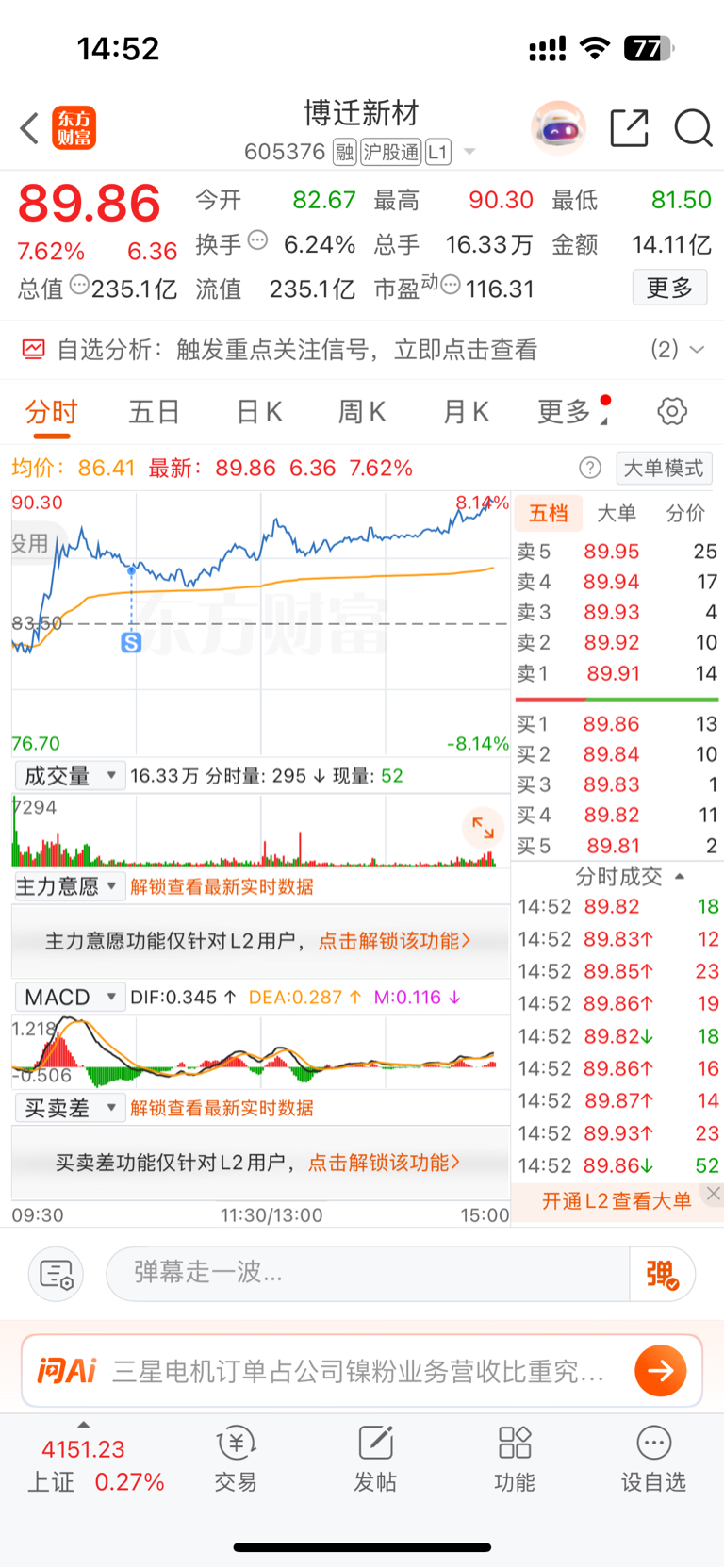 $博迁新材(SH605376)$ 卖飞了,这一波就陪它到这里吧
