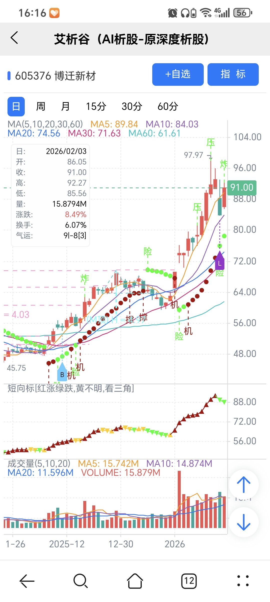 AI模型选股,量化指标识别关键点,简单技术分析确定买卖点,结合量化和人工综合运用,才能有优势。博迁新材