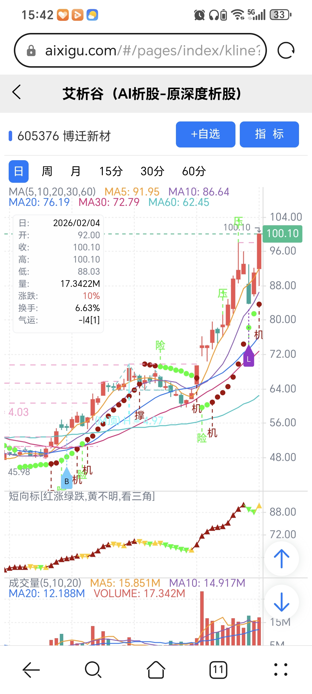 AI模型选股,量化指标识别关键点,简单技术分析确定买卖点,结合量化和人工综合运用,才能有优势。博迁新材