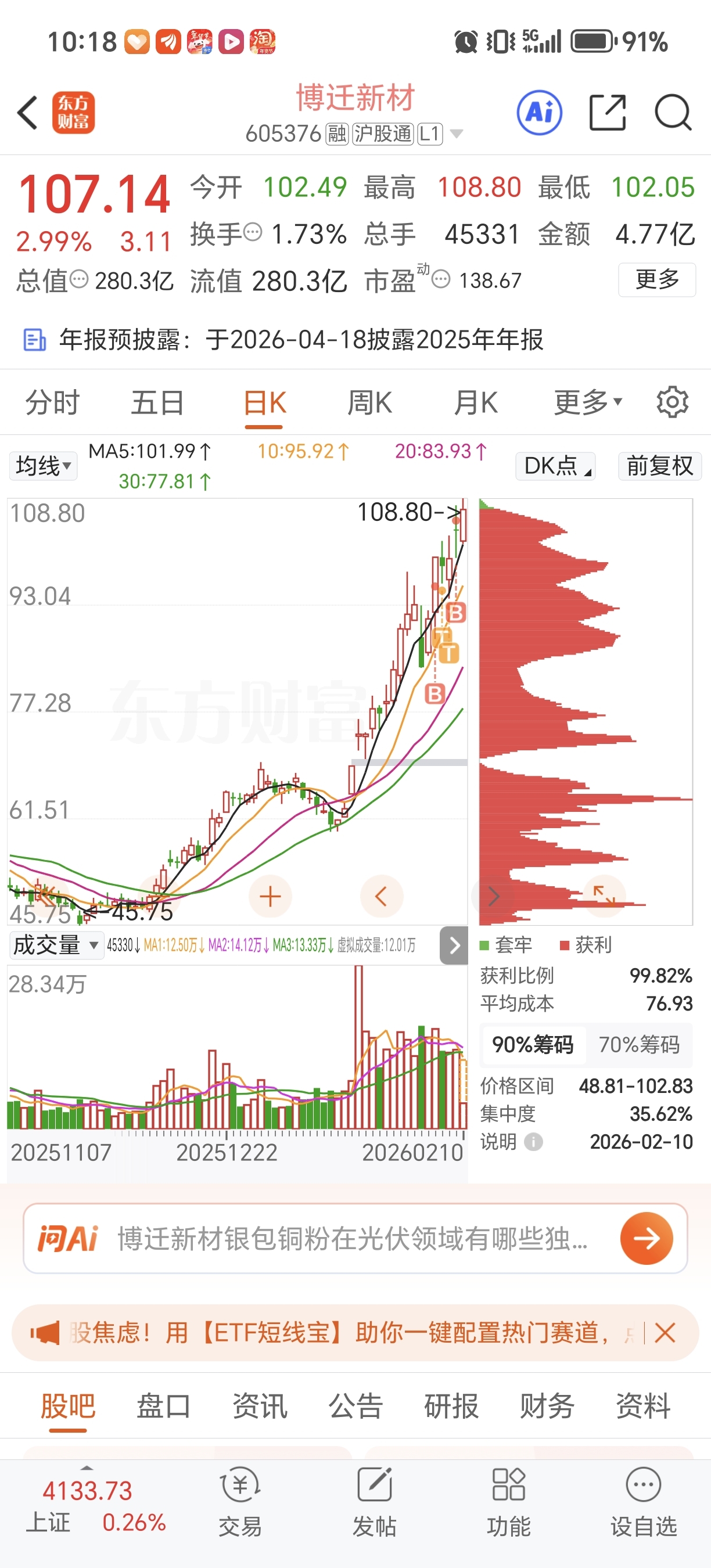 $博迁新材(SH605376)$ 今天量不够,除非涨停,否则风险大!