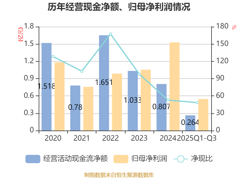 2025年前三季度,公司流动比率为3.27,速动比率为2.65。