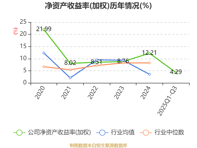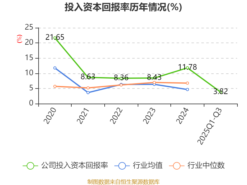 盈利能力方面, 2025年前三季度公司加权平均净资产收益率为4.29%,同比下降5.09个百分点。公司2025年前三季度投入资本回报率为3.82%,较上年同期下降5.33个百分点。