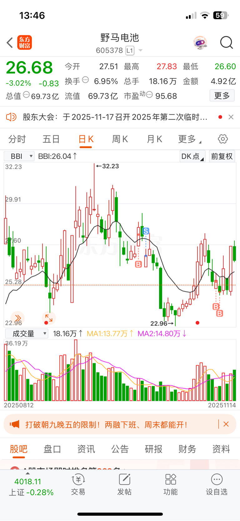 $野马电池(SH605378)$ 2点半不拉直接拍了,不能格局一下