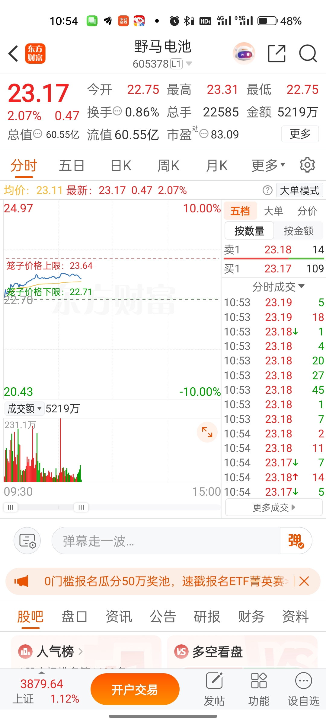 $野马电池(SH605378)$ #强势机会# #股市怎么看# #周度策略# #投资干货# 这只票也稳企了,超短线可以做一波反弹,