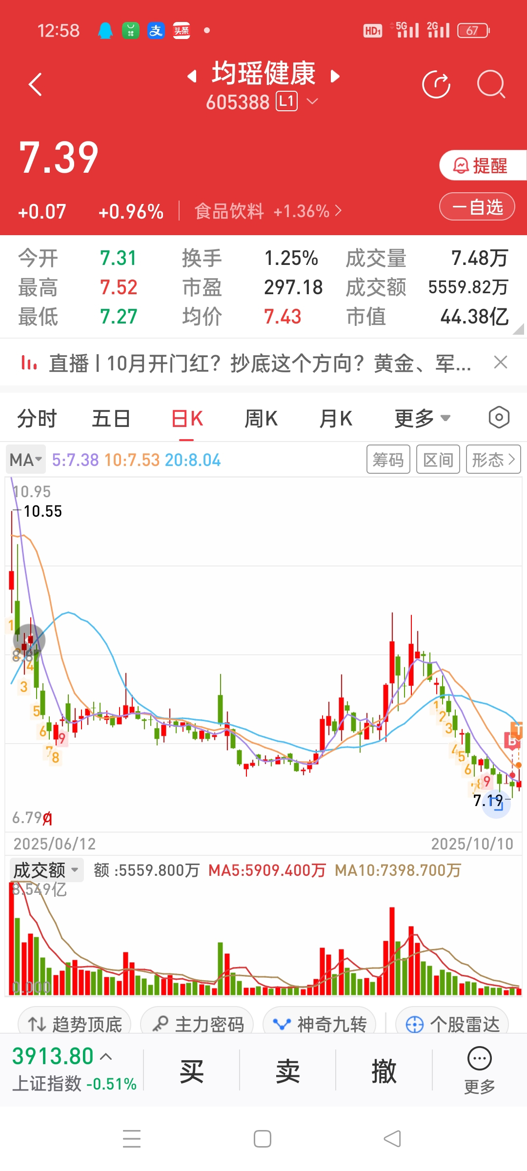 $均瑶健康(SH605388)$ 游击战的经典案例,低位再吃。