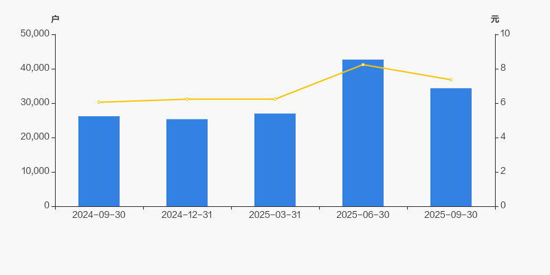 2024年9月30日至今,公司股东户数显著增长,区间涨幅为31.14%。2024年9月30日至2025年9月30日区间股价上涨21.65%。
