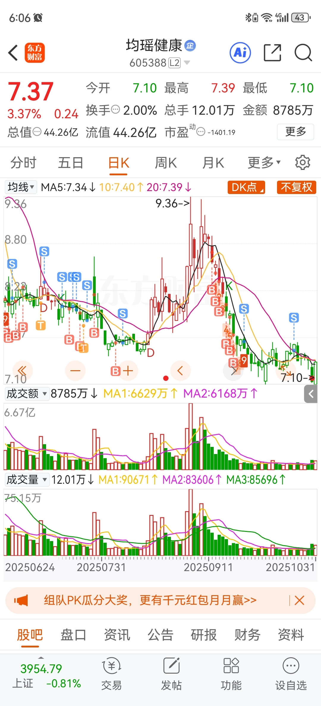 $均瑶健康(SH605388)$ 上次折价7.25他到7.10.这次折价到6.42.我决心6.58入,然后等到18出,