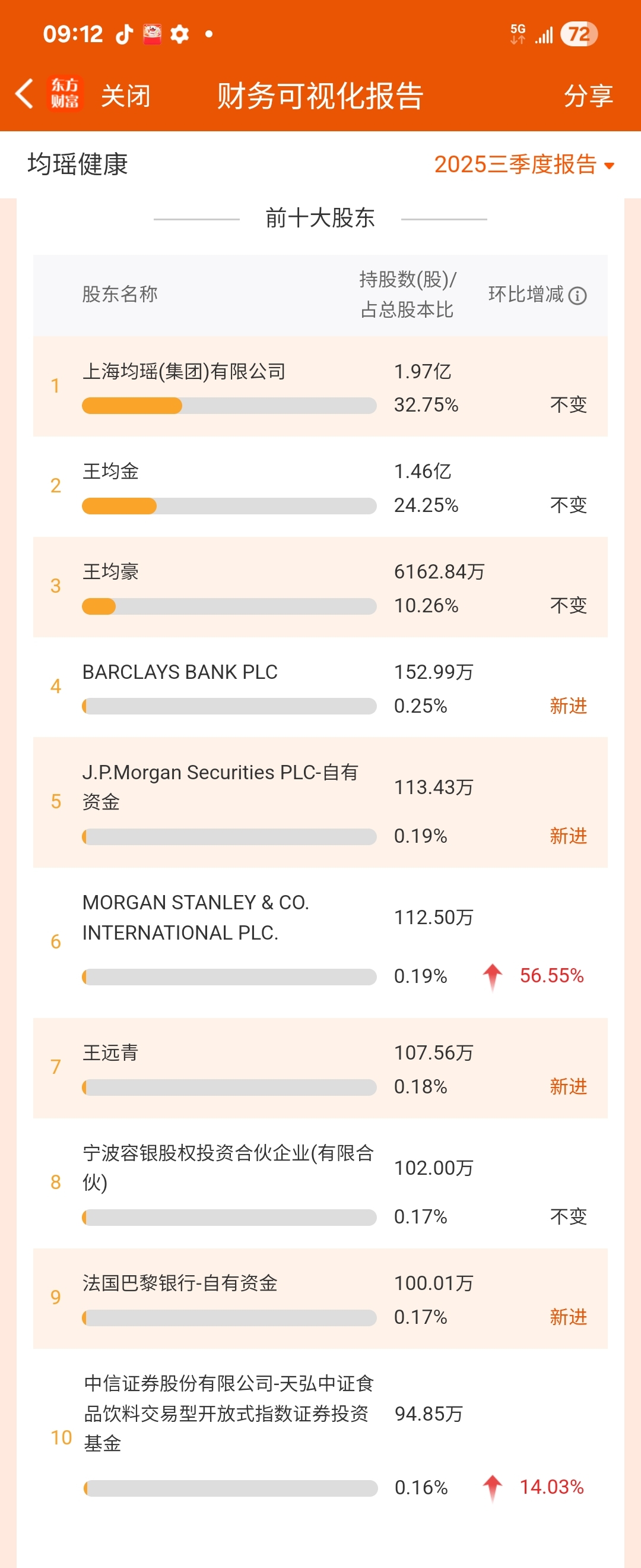 $均瑶健康(SH605388)$ 咋新进这么多外资,有没有老主顾分享一下