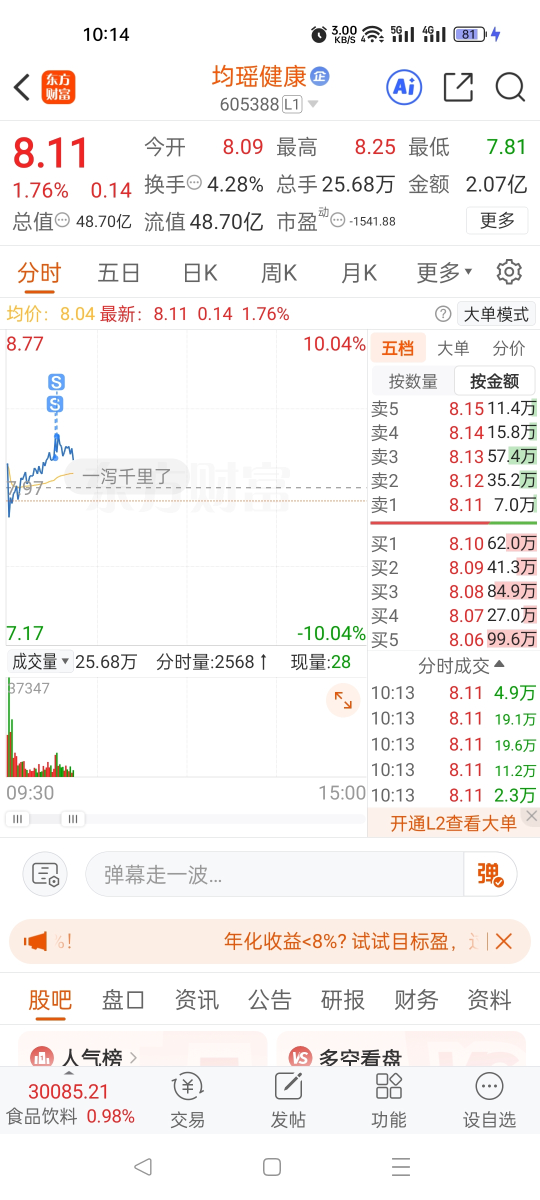 $均瑶健康(SH605388)$ 清仓了