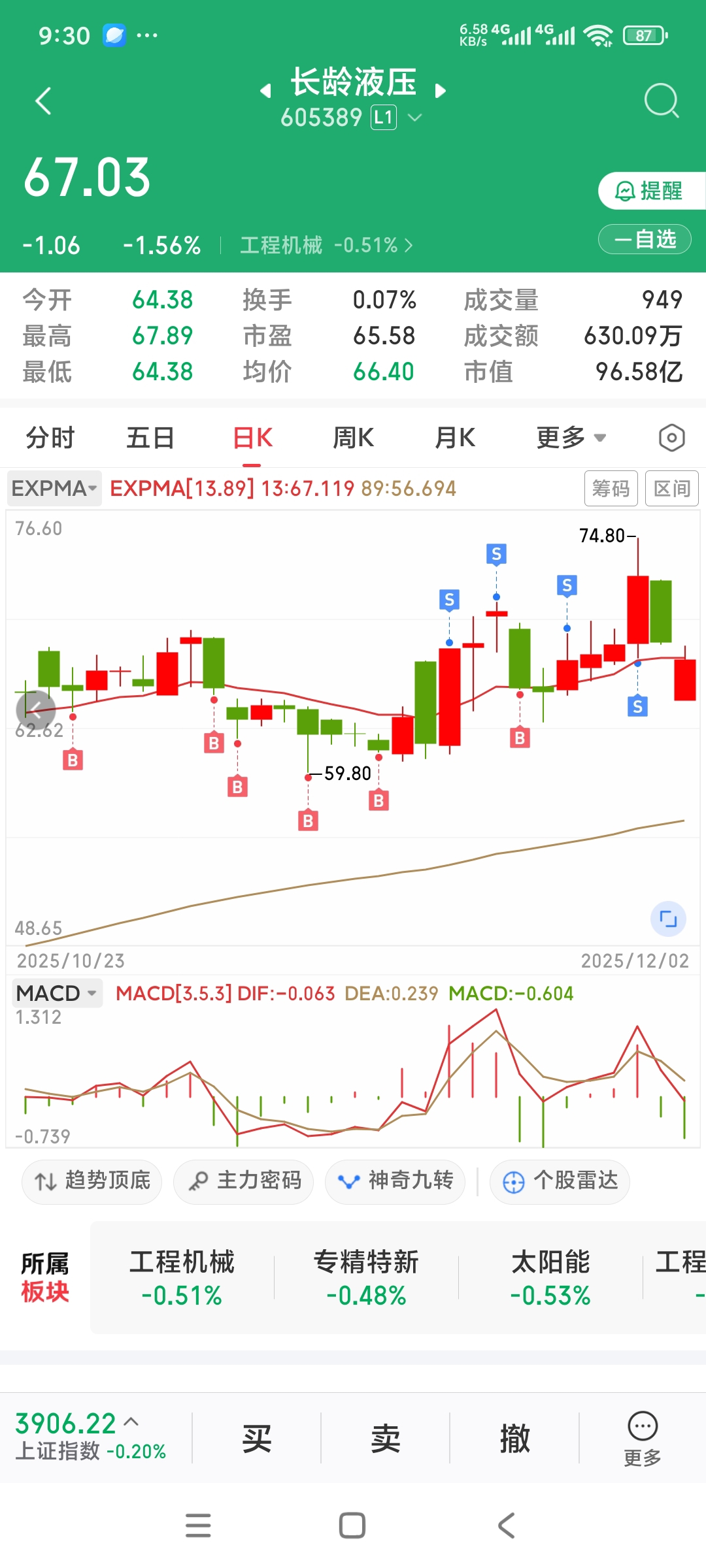 $长龄液压(SH605389)$ 向下的力度不够啊,叫跌的快出来工作了,加油!