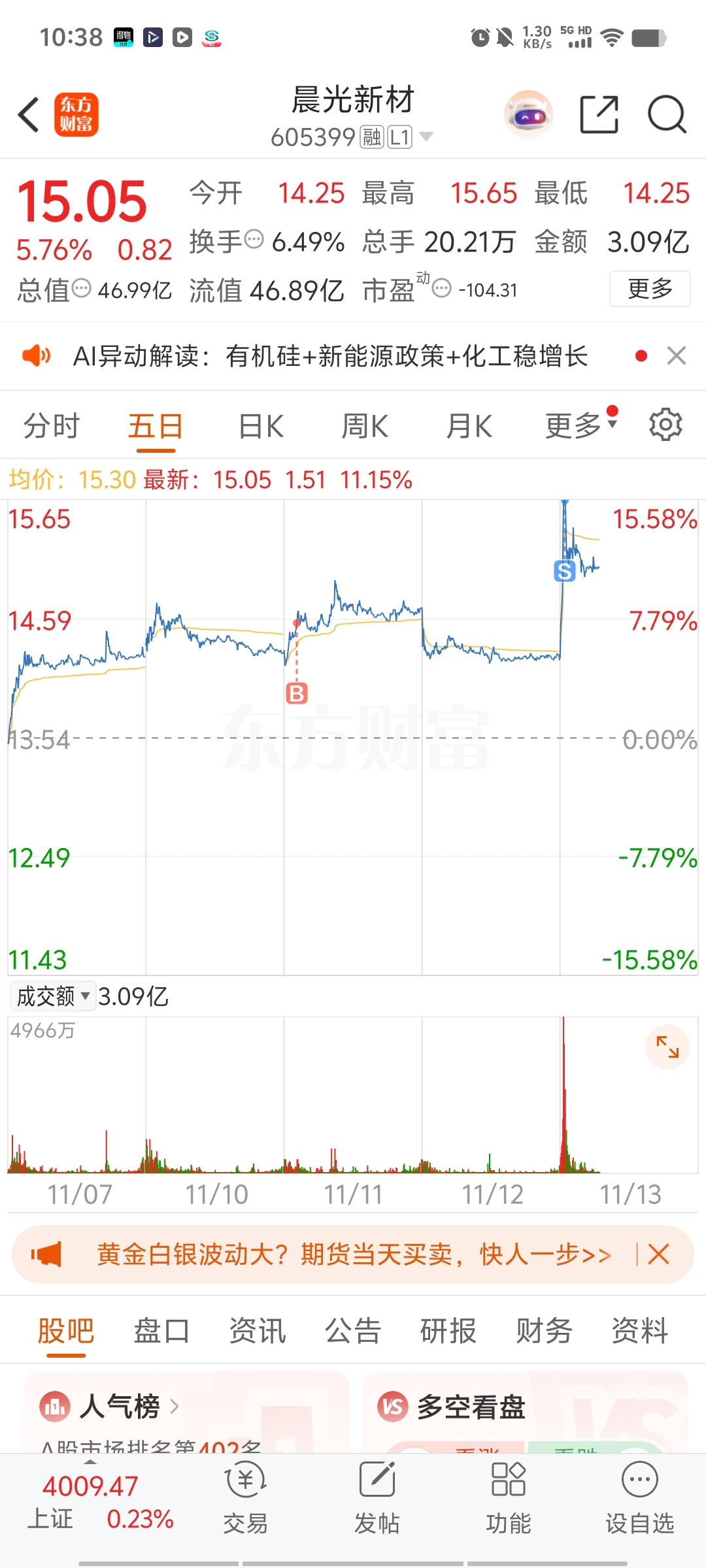 $晨光新材(SH605399)$ 这走势我就知道会有一个板,成功逃顶了
