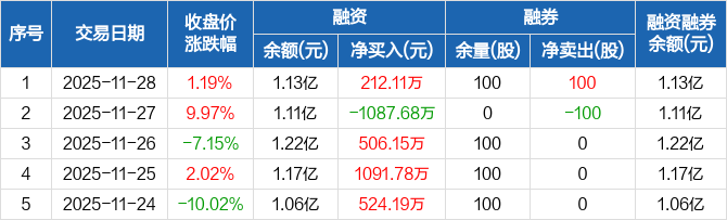 晨光新材:融资净买入212.11万元,融资余额1.13亿元(11-28)