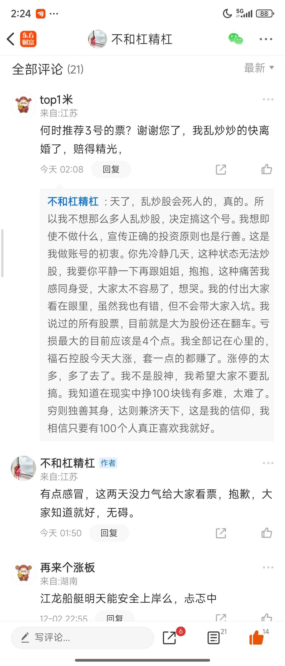 如果你喜欢点个关注,周五买的航天发展三个涨停,说人民同泰马上涨停,我最多骗你一个关注,不行拉黑就是。