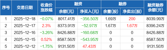 晨光新材:连续4日融资净偿还累计1114.09万元(12-18)