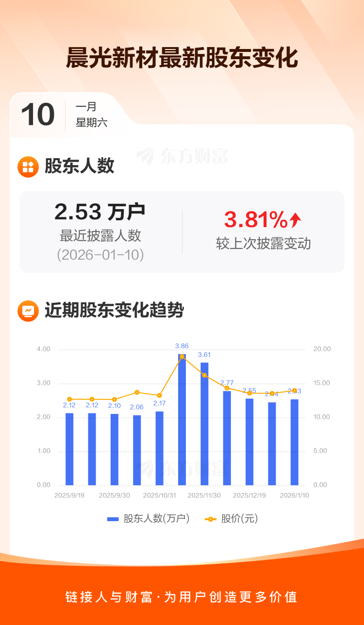 晨光新材:截至1月10日最新股东户数2.53万户,较上期增加3.81%
