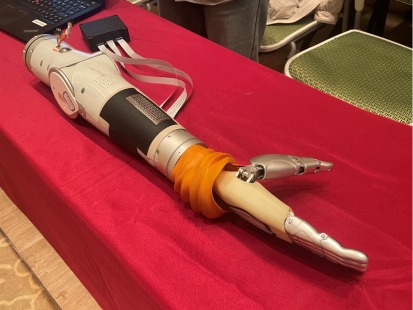 发布会现场展示的安装有“电子皮肤”的机械手臂