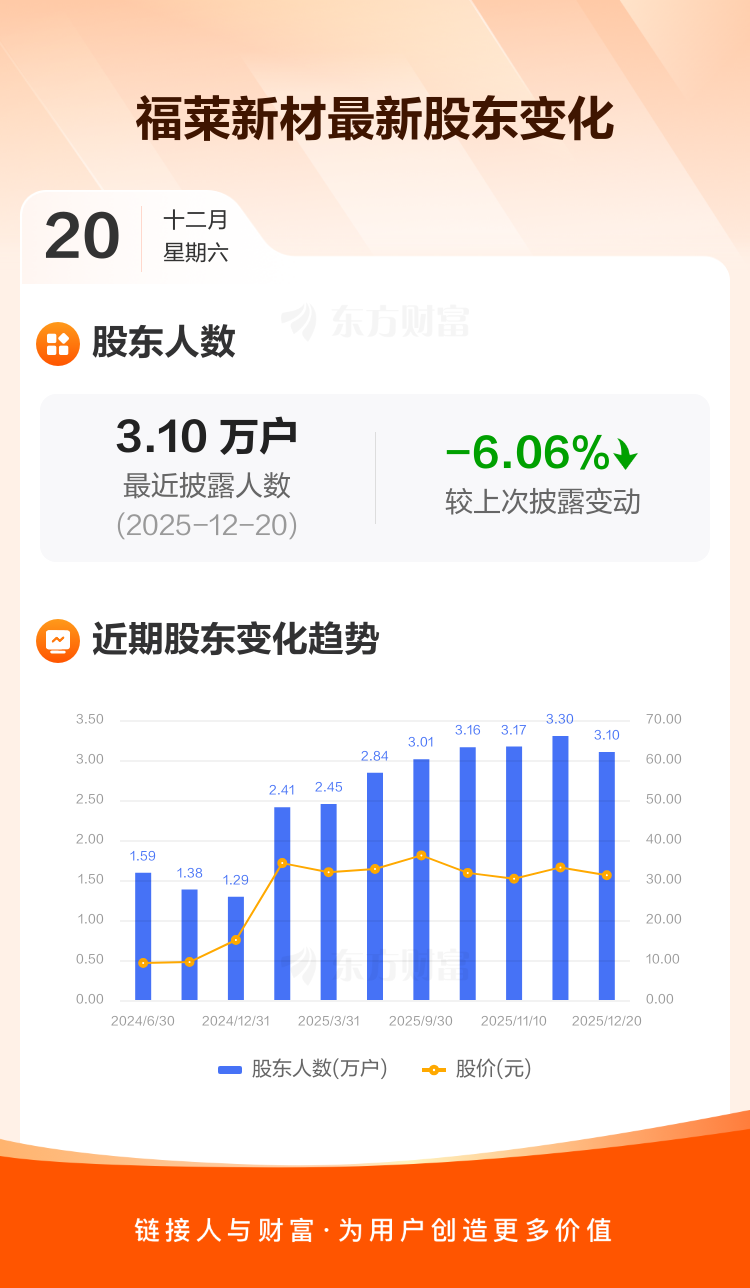 福莱新材:截至12月20日最新股东户数3.10万户,较上期减少6.06%