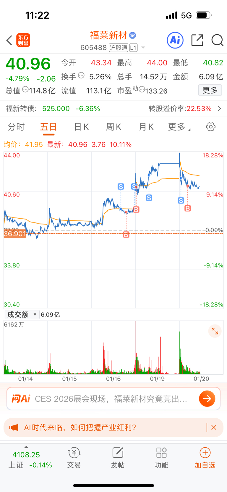 $福莱新材(SH605488)$ 继续做T