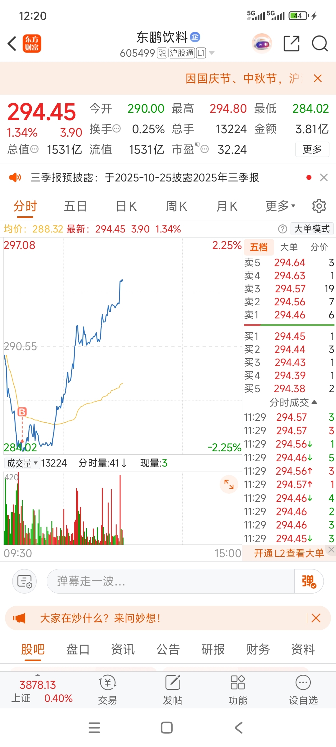 $东鹏饮料(SH605499)$ 买少了,没想到这么强,感觉趋势往上了