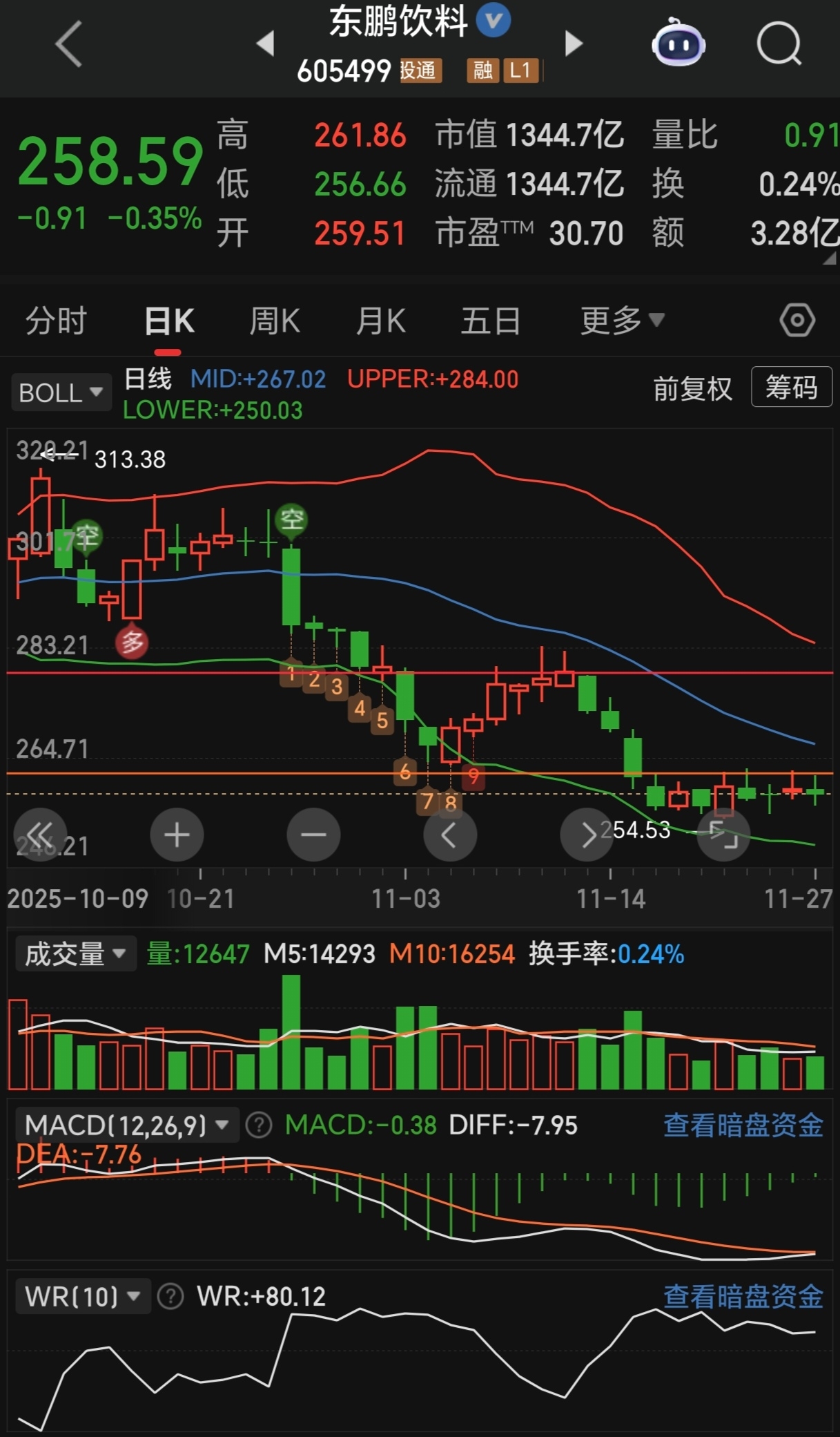 $东鹏饮料(SH605499)$ 消费利好也带不动,262真难上,8天还是原位踏步,上不去就要下来了