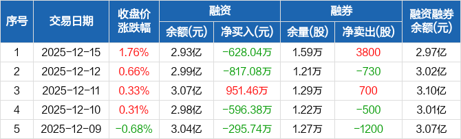 东鹏饮料:融资净偿还628.04万元,融资余额2.93亿元(12-15)
