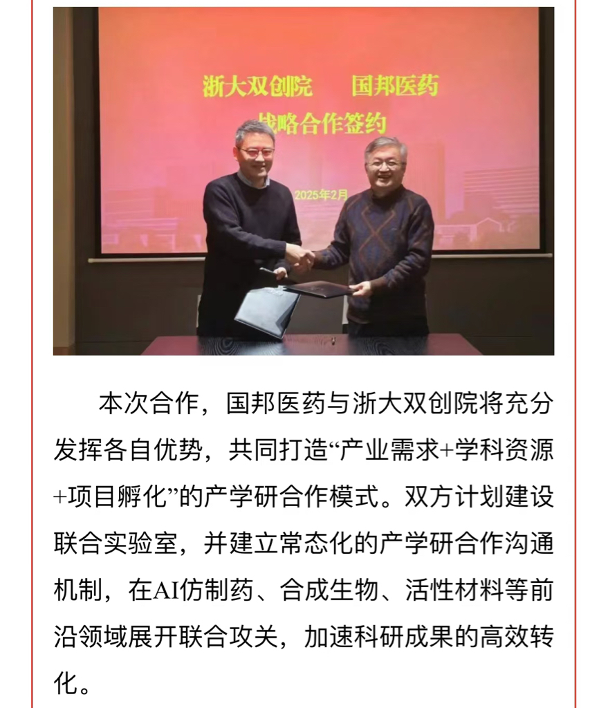 $国邦医药(SH605507)$ 国邦医药跟浙大双创搞合作了。