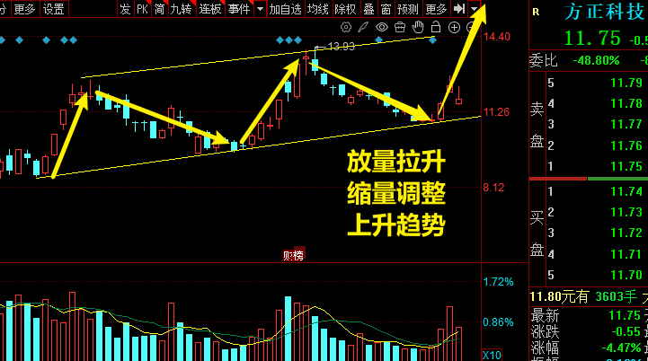 早盘低开跳水后,迅速放量拉升,在行情低迷的情况下,主俚底部护盘迹象明显,近期走出了标准的红三兵走势,成交量阶梯式温和放量,量价齐升,从整体K线形态来看,有机会形成N字形进攻形态,我在今天尾盘股价站上均价线10.47的位置上的车,目前行情刚刚启动,短期目标价位左锋高点12.1。