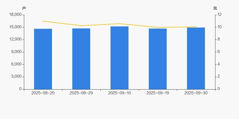 截至2025年9月30日,公司最新总股本为2亿股,且均为流通股。户均持有流通股数量由上期的1.36万股下降至1.34万股,户均流通市值13.48万元。