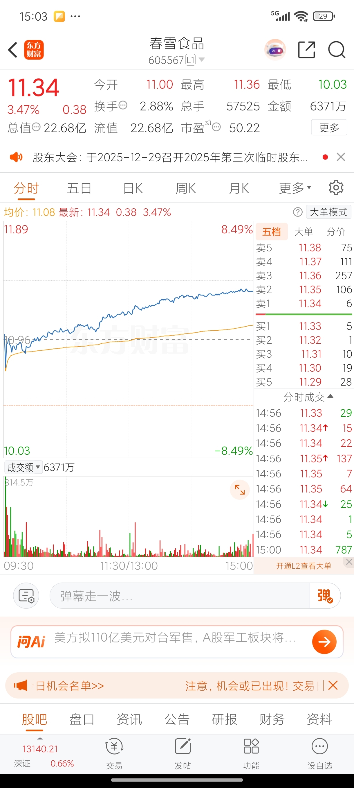$春雪食品(SH605567)$ 第一次见这么无欲无求的线,主力是完全没有情绪起伏