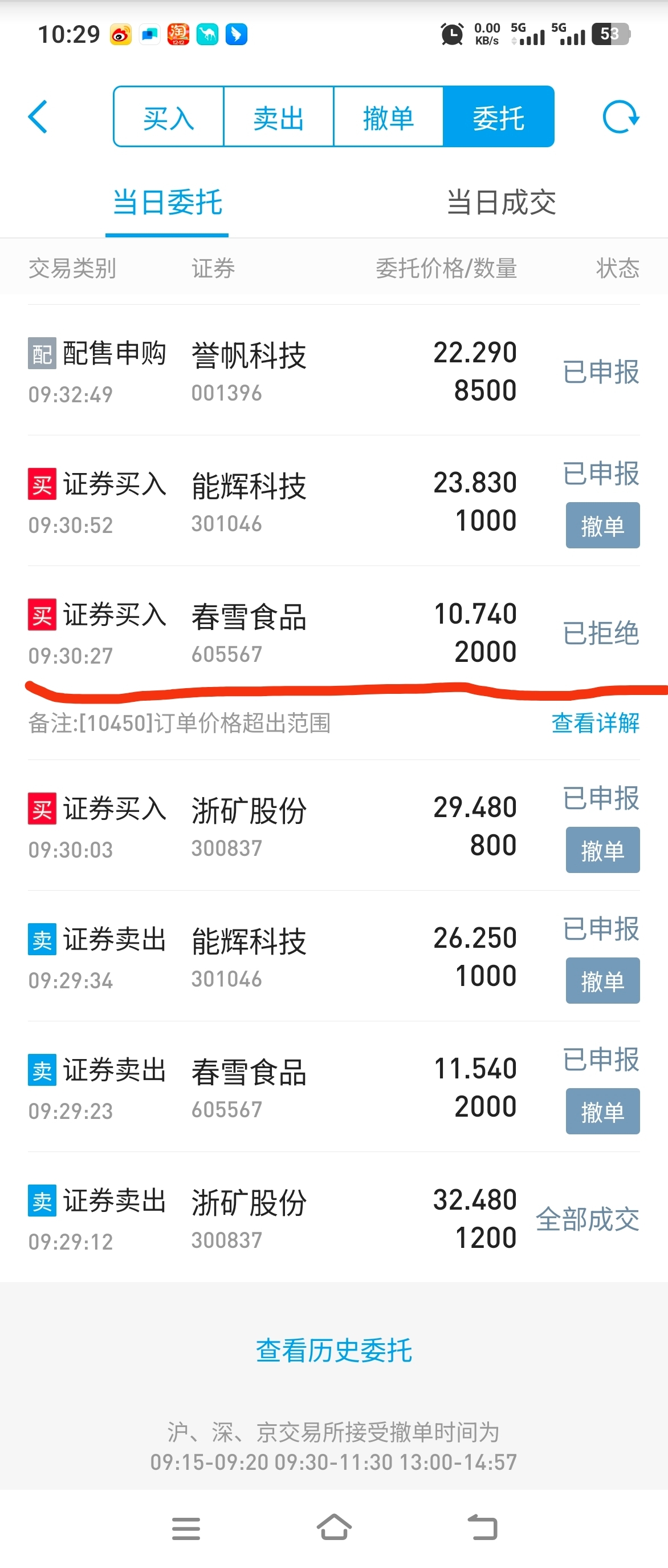 9.30分27秒挂单10.74买入遭到拒绝,就那么几秒一分不差,当我机器人了吗?