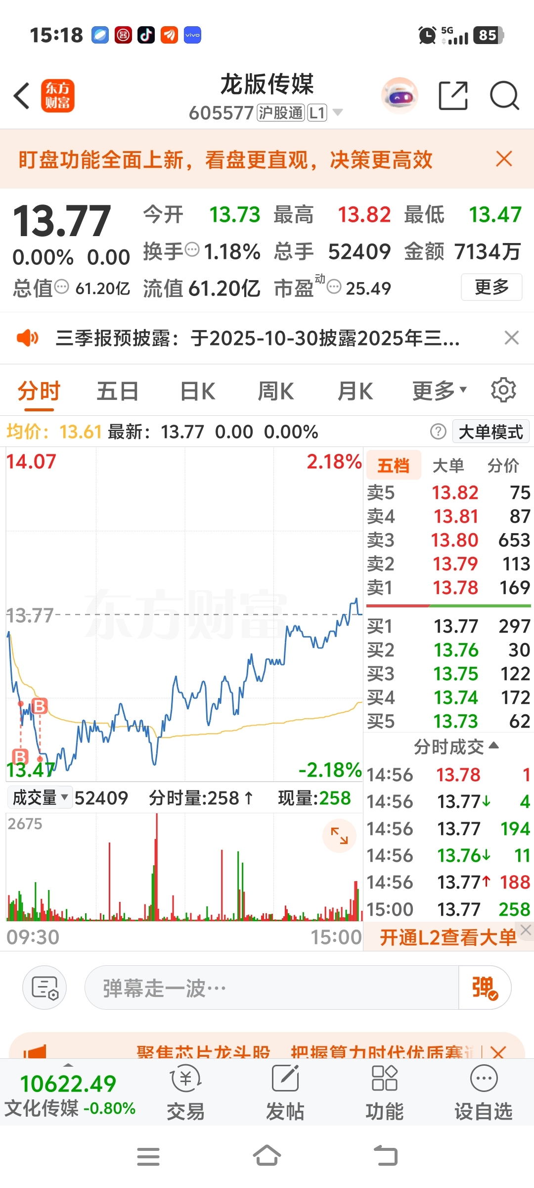 $龙版传媒(SH605577)$ 明天冲高抛出