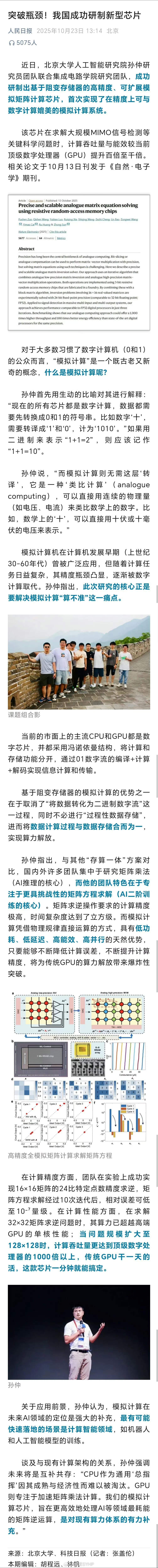 大变天,新时代,今后算力产业不再使用传统GPU而是更强的电力电压模拟计算。