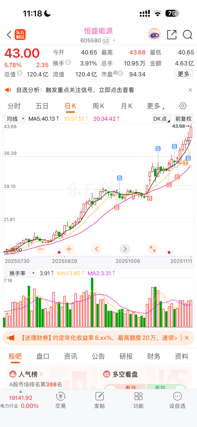 昨天清仓清早了啊今天涨得这么好进又不敢在进了祝留下的发财